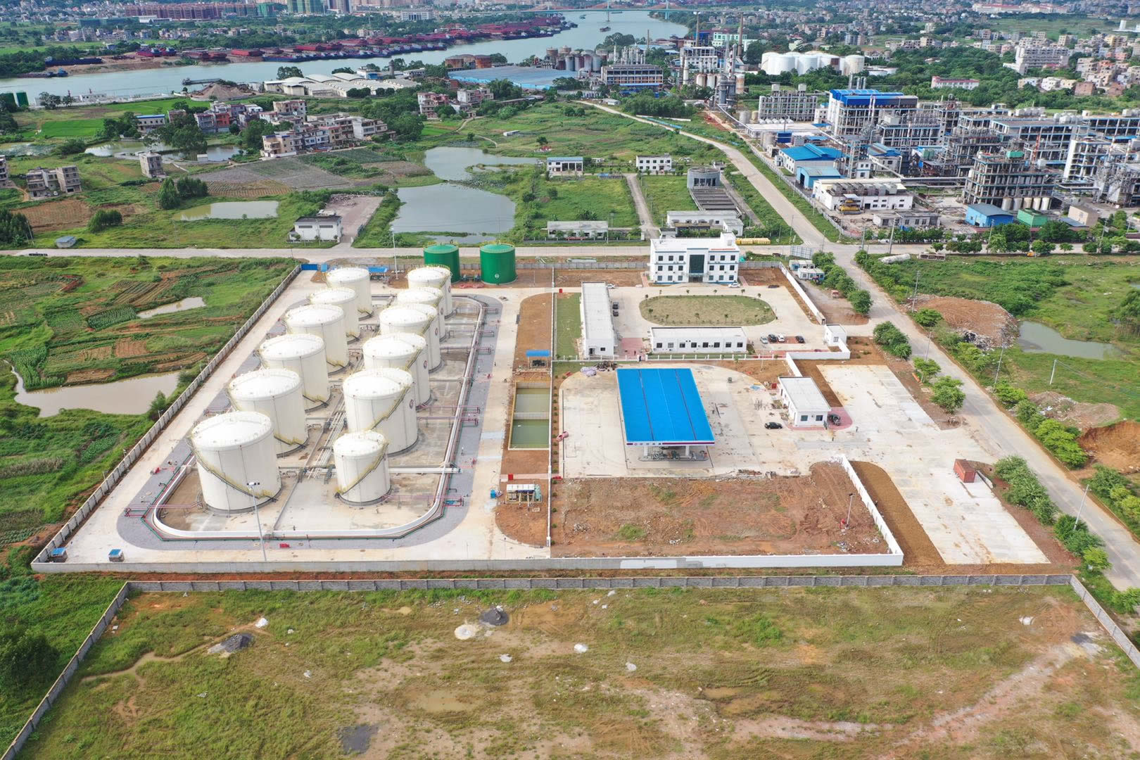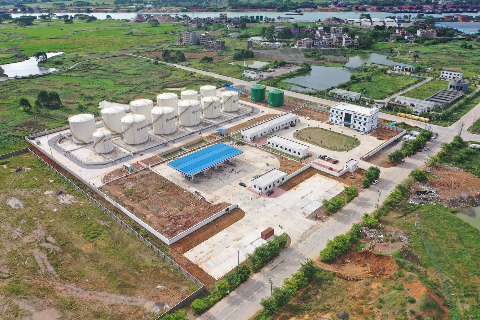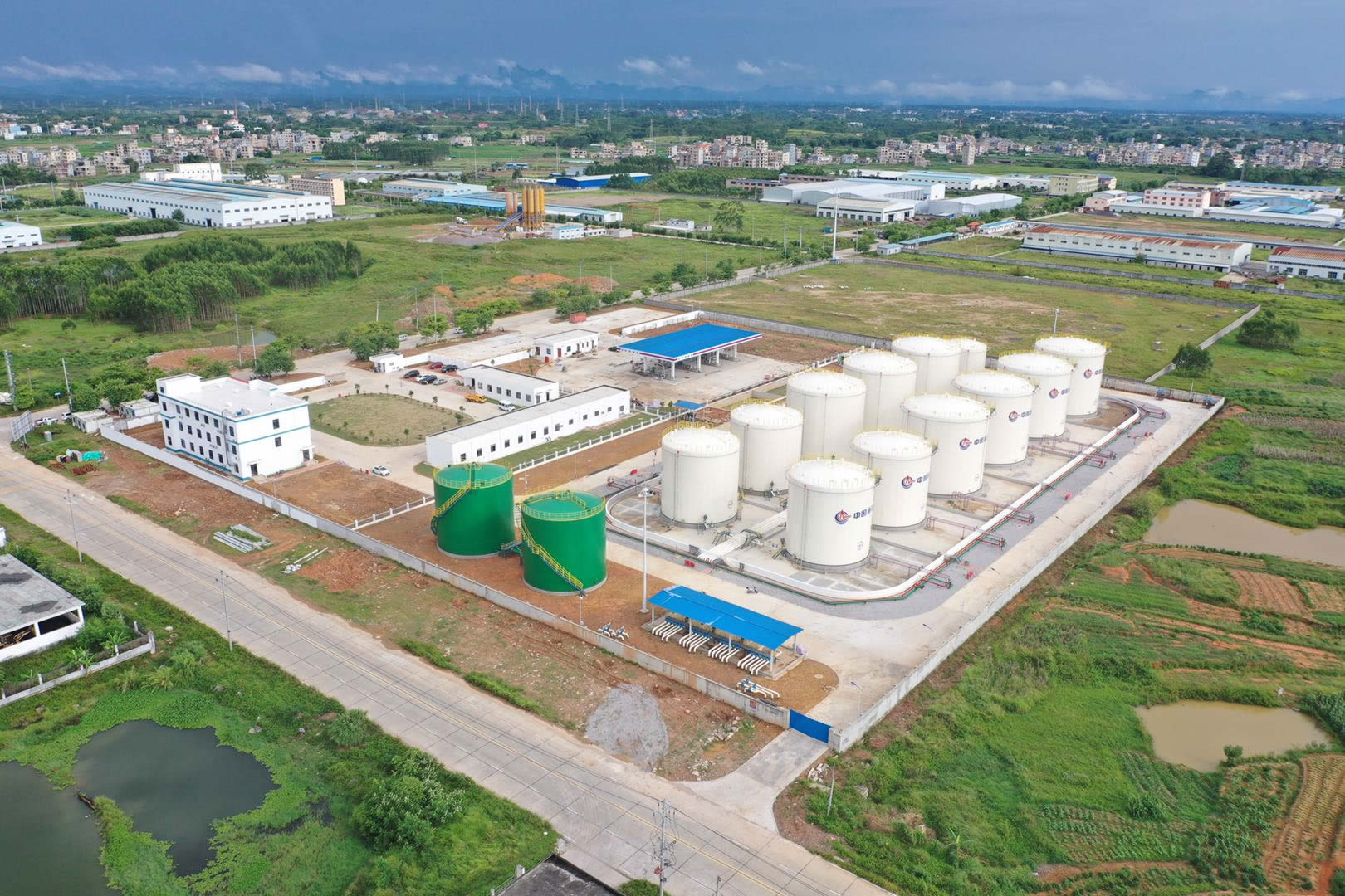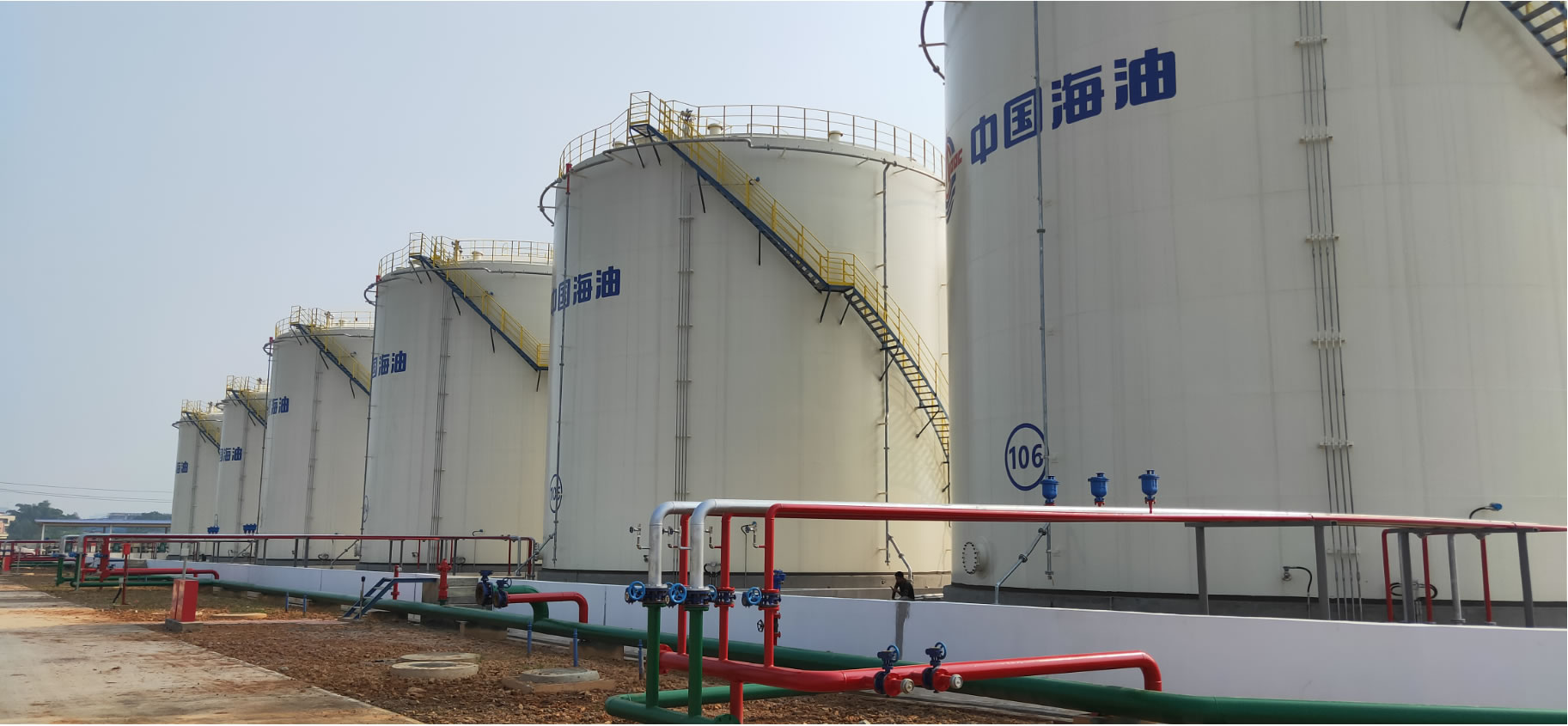 中海油销售桂平有限公司桂平油库建设EPC 总承包项目,位于广西壮族自治区贵港市桂平市长安工业区内,我公司作为施工总承包方,承揽工作内容为:新建库容为 3 万立方米,其中柴油库容 1.6 万立方米;汽油库容量 1.3 万立方米;乙醇库容 0.1 万立方米,新建7 座3000 立方米储罐,4 座2000 立方米储罐,1 座1000 立方米储罐,2 座1500 立方米消防水罐,包括油库至码头引桥根部截断阀管线及相关配套设施(含综合楼、消防泵房及配套电间、化验室、营业室、办公区门卫、汽车装卸棚、装船泵棚、污水处理设备罩棚)和相关设备购置,项目总建筑面积 2953.98 平方米。